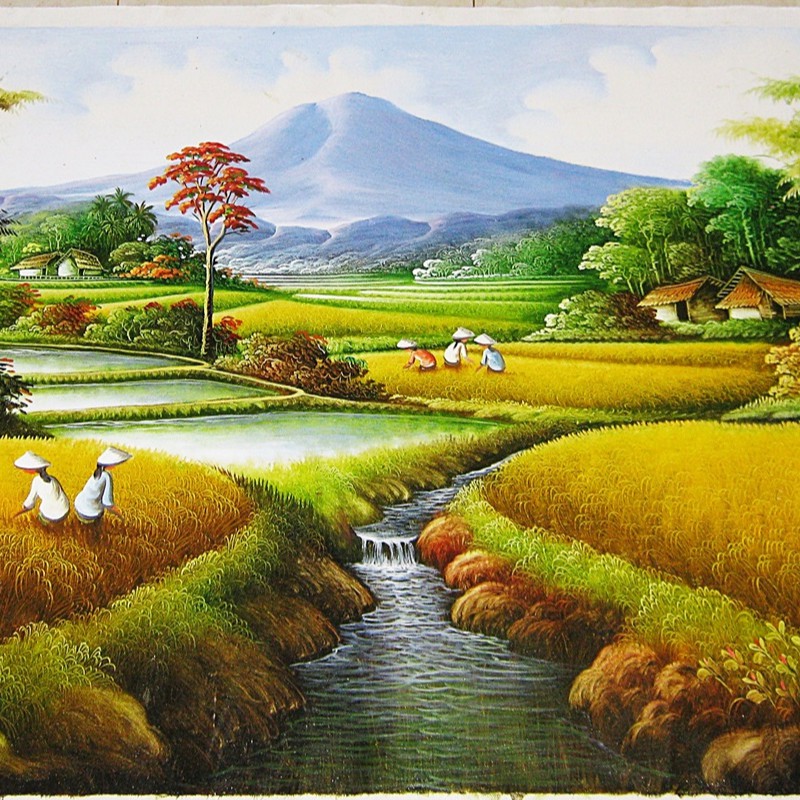 Lukisan pemandangan sawah panen padi dengan terasering indah. Update info harga dari produk lukisan pemandangan sawah yang anda inginkan dari. Lukisan panen padi dengan sawah yang menguning dan pepohonan rimbun, rp313.500.